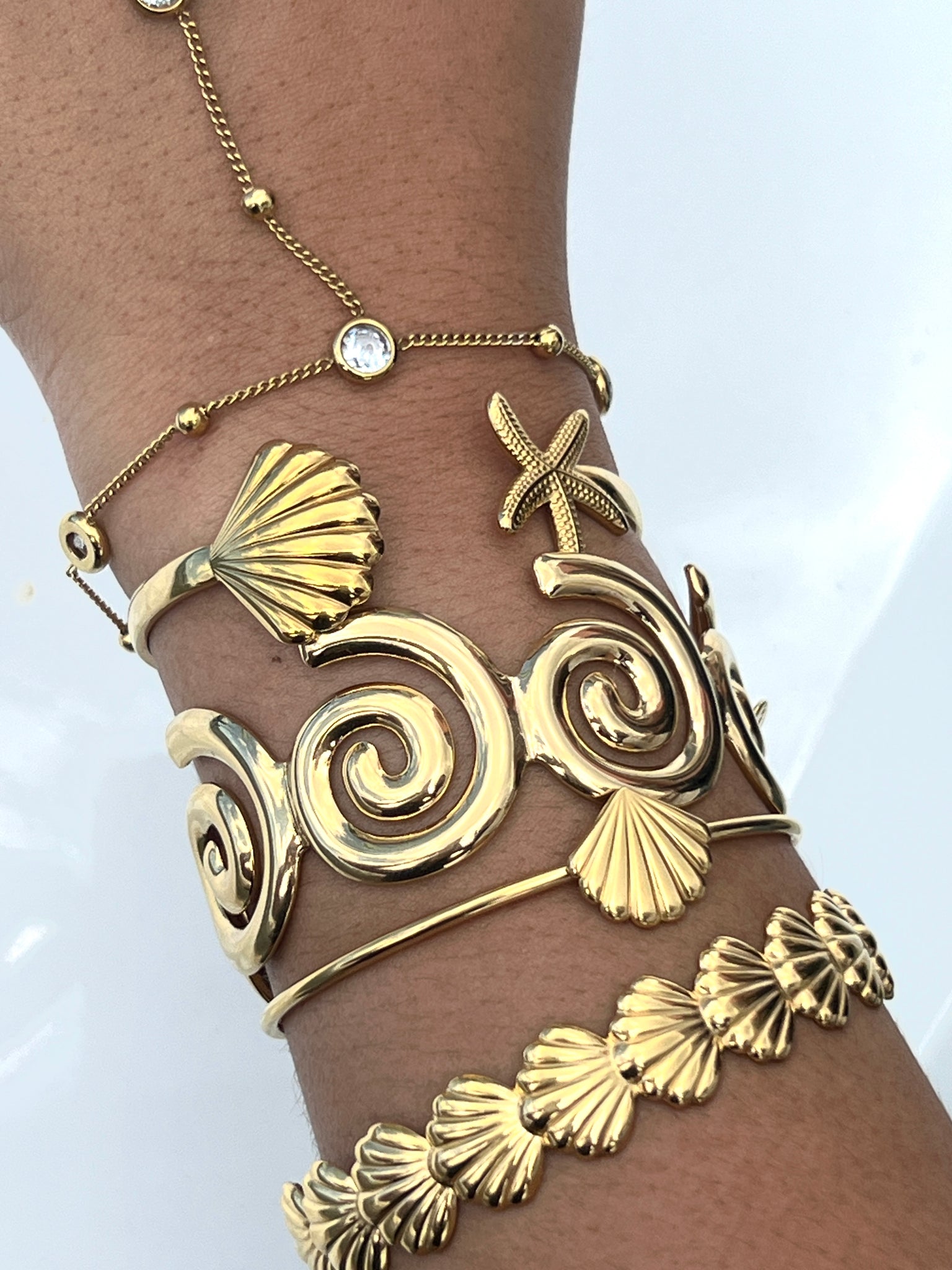 Pulsera abierta, ajustable y cómoda para uso diario. Hecha en stainless steel, resistente al agua y al desgaste. Ideal para llevar sola o combinar con otras piezas.